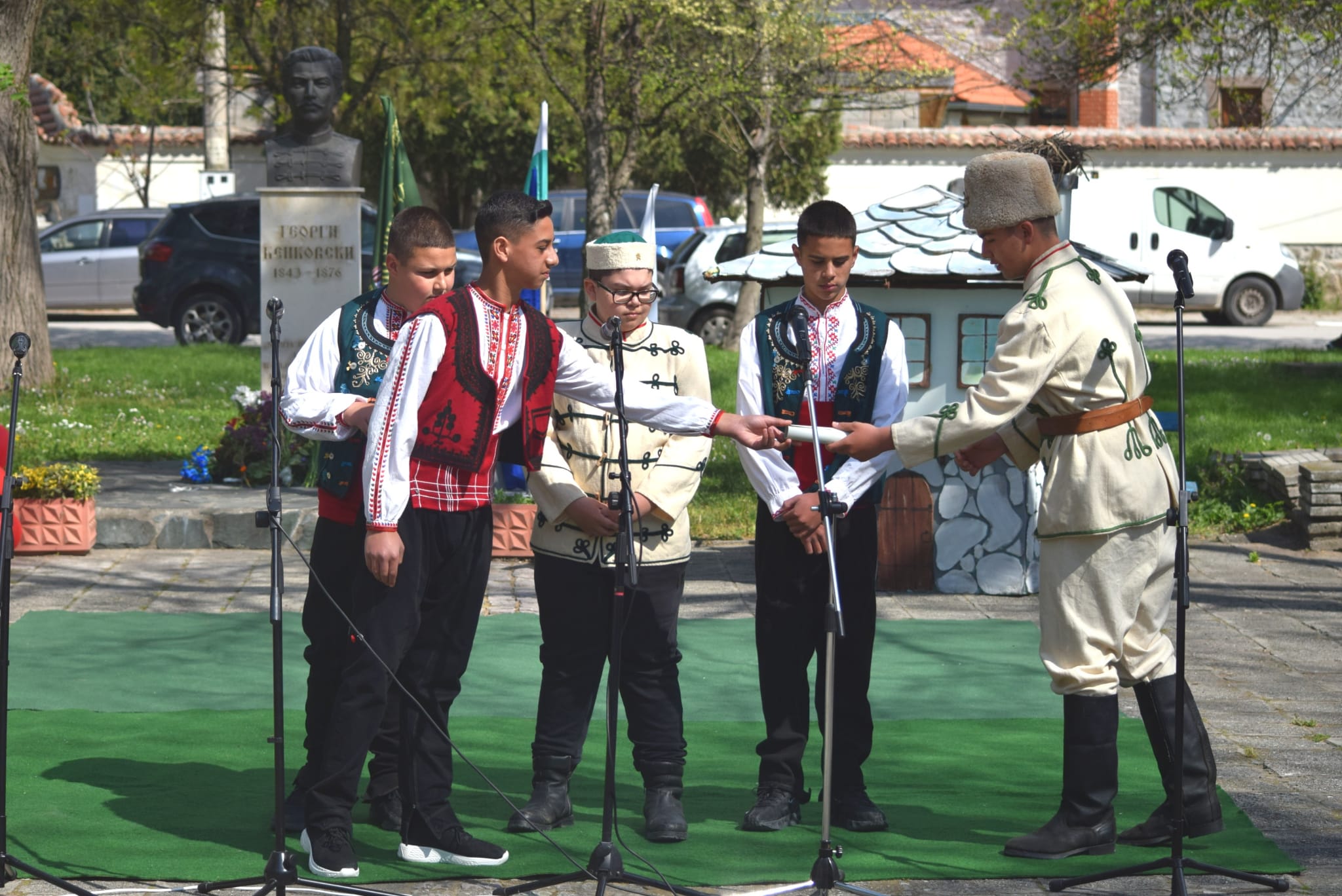 Последва сцена по мотиви от Славейковата творба „Даваш ли, даваш, Балканджи Йово", пресъздадена от ученици от СУ „Георги Бенковски", която върна присъстващите към годините на робството. След това младите актьори, облечени в носии и четнически униформи, пренесоха гостите в атмосферата от 1876 година, когато се събужда българският дух за освобождение и се полагат основите за въстание. Учениците пресъздадоха събитията, описани в „Записки по българските въстания" от Захари Стоянов. С особено вълнение те възпроизведоха моменти от избухването на Априлското въстание. В един от тях вестоносецът Георги Салчев донася Кървавото писмо на Тодор Каблешков до апостолите в Панагюрище, сред които Георги Бенковски, Панайот Волов и Захари Стоянов. Те решават въстанието да бъде обявено преди още останалите комитети да са готови за него.