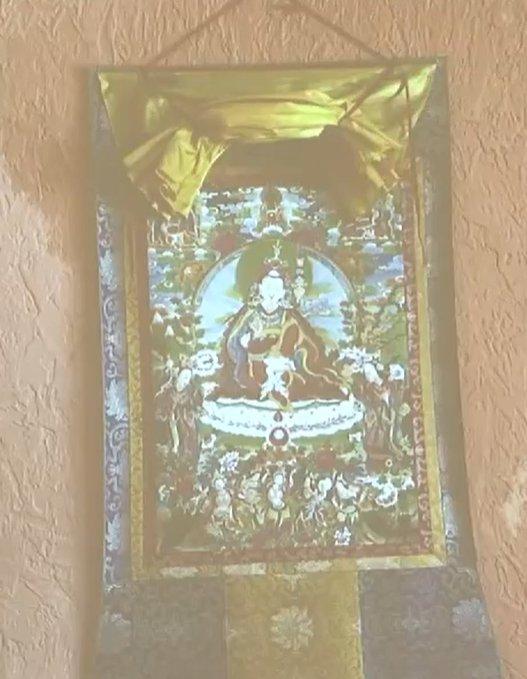 В стаята има множество картини и статуетки с будистка тематика, като преобладават изображения, свързани с тибетския будизъм.