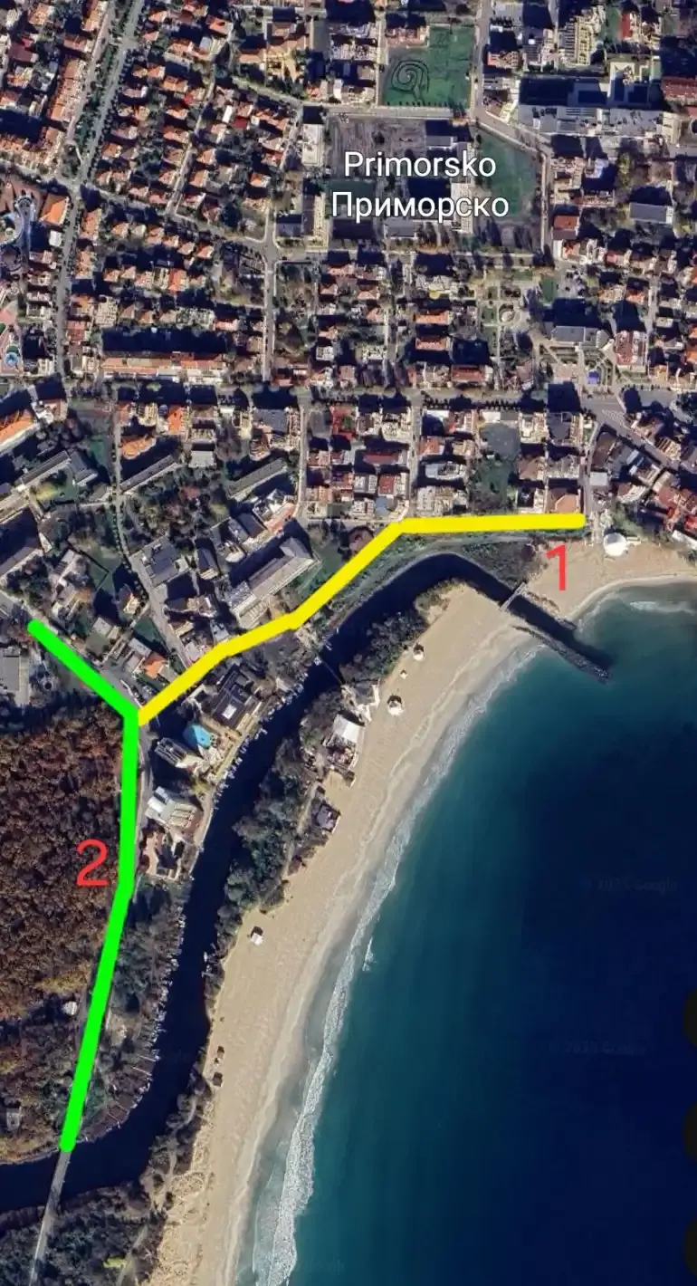 Община Приморско е подписала две ключови споразумения за реализация на инфраструктурни проекти, които ще променят облика на курорта, съобщи кметът Иван Гайков пред „Флагман“. Първият проект предвижда изграждане на крайбрежна алея от Южния плаж до бъдещия парк „Кория“. Трасето ще следва поречието на река Дяволска и ще се свързва с пътната артерия между Приморско и ММЦ. Предвидени са зони за паркиране, изцяло нова настилка, озеленяване, както и удобен достъп за пешеходци и велосипедисти. Маршрутът започва от ул. „Станчо Костадинов“, продължава по ул. „Крайбрежна“, след това по ул. „Лазурен бряг“ и достига до ул. „Съединение“, където пресича основната пътна връзка.