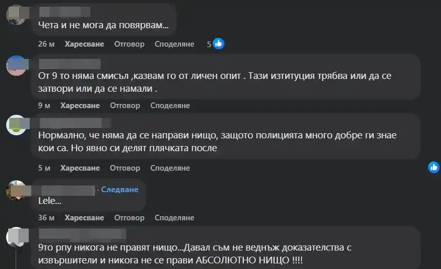 Други пък изтъкват, че при подаване на сигнали за други престъпления полицията не им е оказала никакво съдействие.