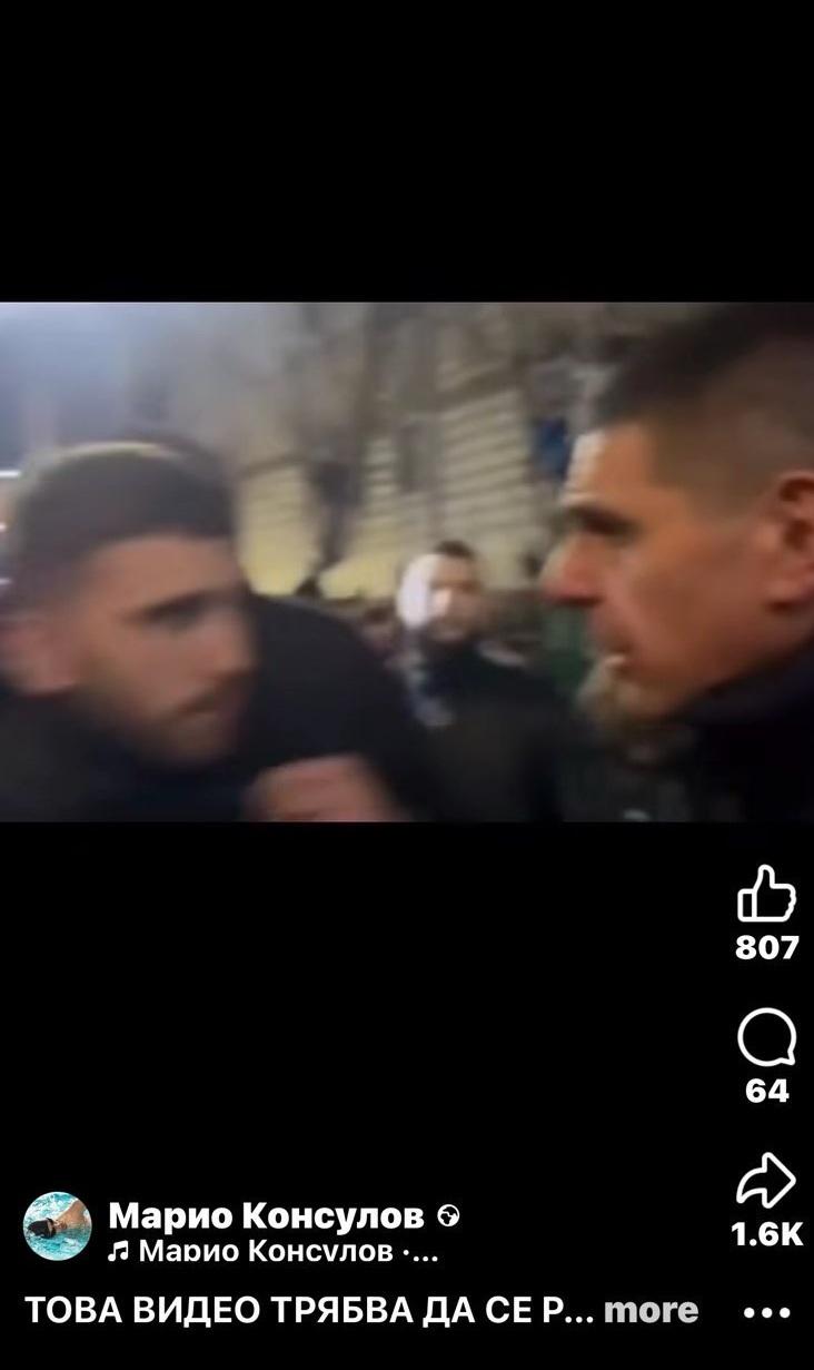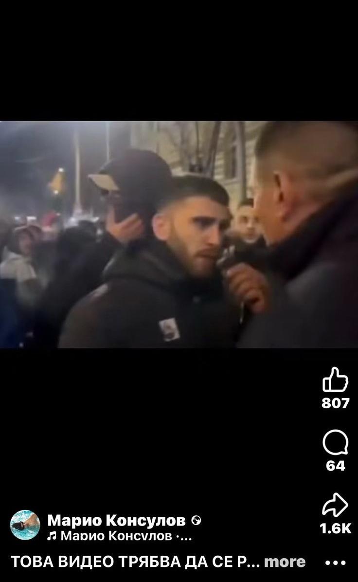 “…. Какво виждаме тук и какво забелязваме. Хората с по-набито око ще видят, че всъщност маскираният тип, който стои отстрани и си сваля маската пред Иво Мирчев за да му се покаже кой е. Иво Мирчев тук говори с най-агресивните протестиращи. Тези, които подпалиха София. И явно се познават. И явно господин Мирчев много добре се познава с тях. Ето сега той бута следващия, обяснява му нещо. Ако върнете записа ще видите даже как момчето си поглежда телефона, явно чака някакво време…”