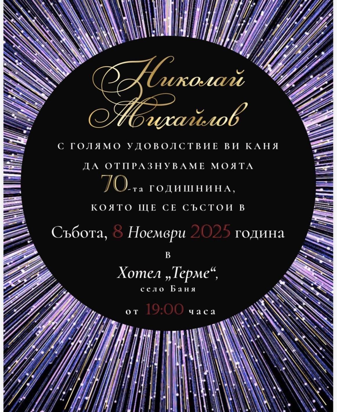 Поканата за партито на Николай Михайлов е изпратена на президента Румен Радев, но той не е посмял да отиде лично