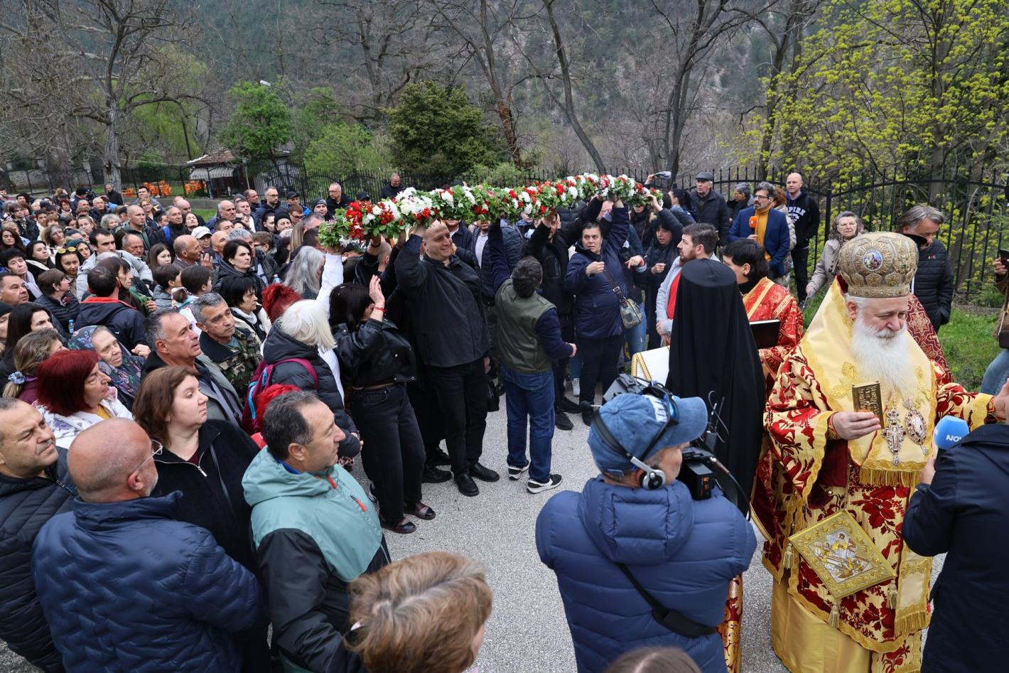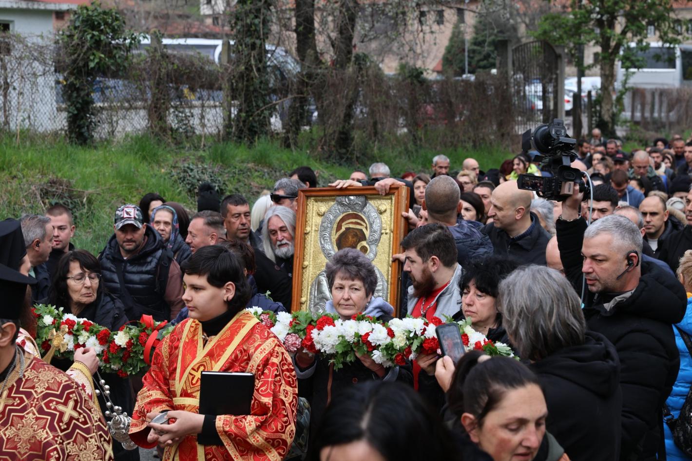 Иконата бе носена от богомолци и предвождана от венец от пролетни цветя.
