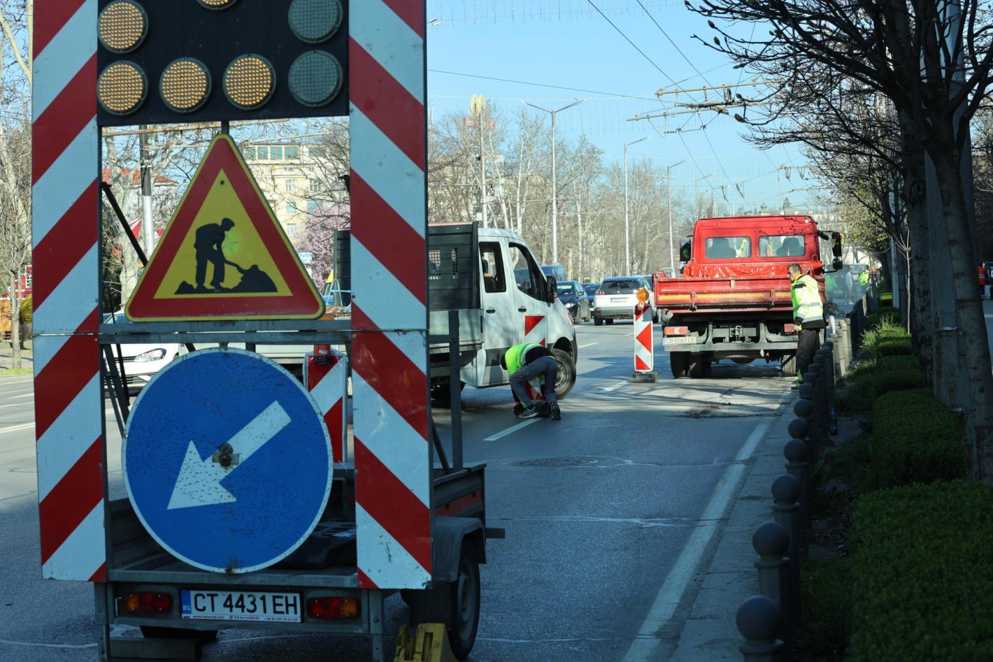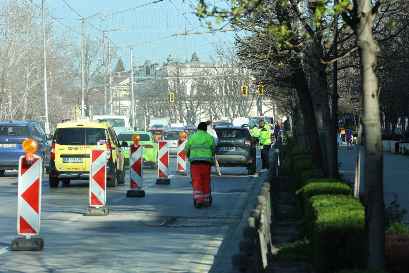 В този участък на булеварда ремонтът е основно в бус лентата, като движението се затруднява, предаде "Булфото".