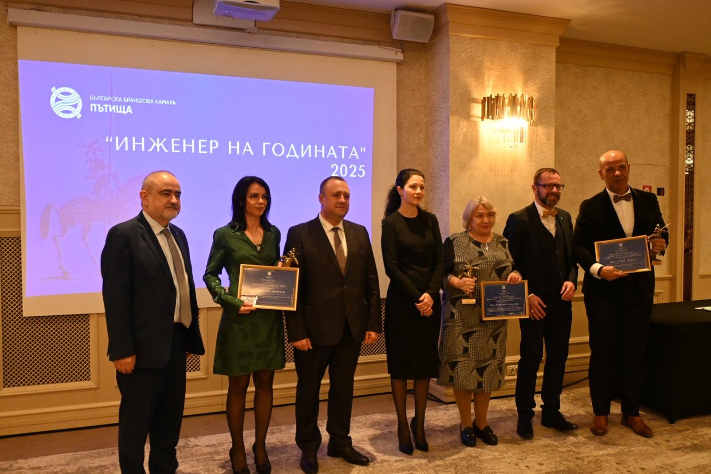 На официална церемония, организирана от Българската браншова камара „Пътища“ бяха връчени тазгодишните награди в категориите „Строителен надзор – пътно строителство и съоръжения“, „Проектант – пътно строителство и съоръжения“ и „Инженер на годината“ за 2025г.