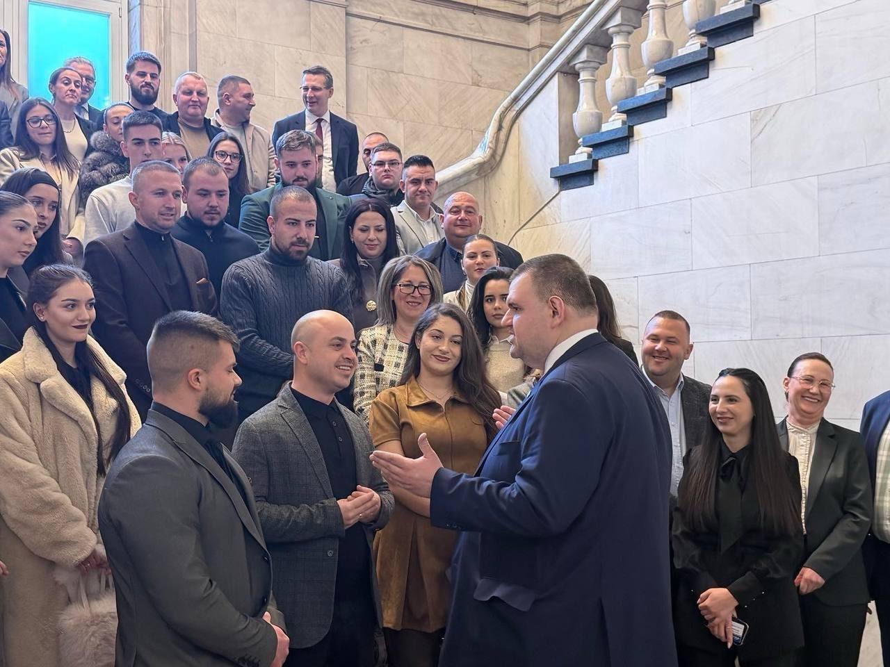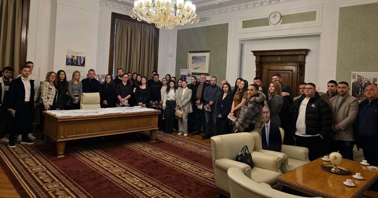 Лидерът на ДПС и ПГ на ДПС-НОВО НАЧАЛО Делян Пеевски  се срещна с група младежи от област Благоевград, които посетиха Народното събрание и Музея на Сглобката, разположен в кабинет 222А.