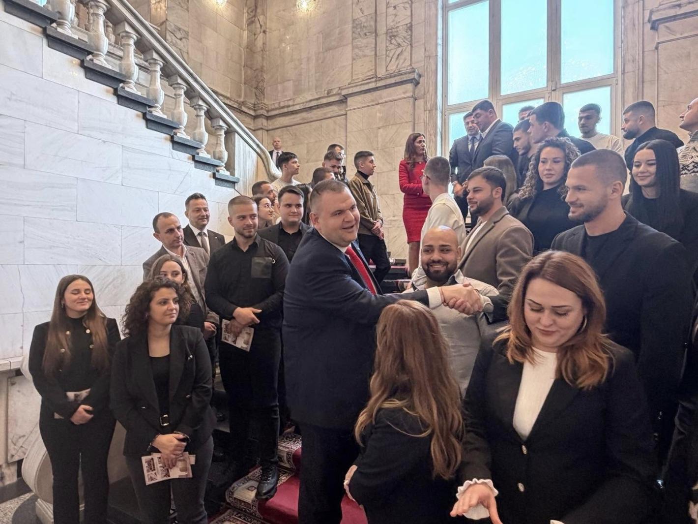 Лидерът на ДПС и ПГ на ДПС-НОВО НАЧАЛО Делян Пеевски се срещна с младежи от област Хасково, които посетиха Парламента и разгледаха експозицията в Музея на Сглобката, разположен в кабинет 222А в Народното събрание.