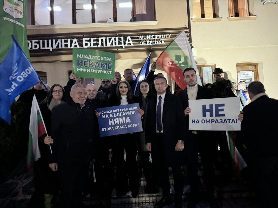 Още от 5 следобед, на площада в Белица, започнаха да се събират участниците в протеста “Не на омразата”, организиран от ДПС-Ново начало. Сред хората застана кметът Радослав Ревански.