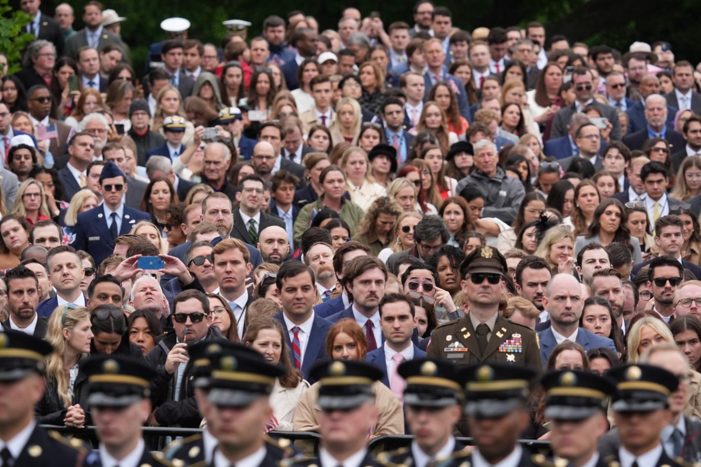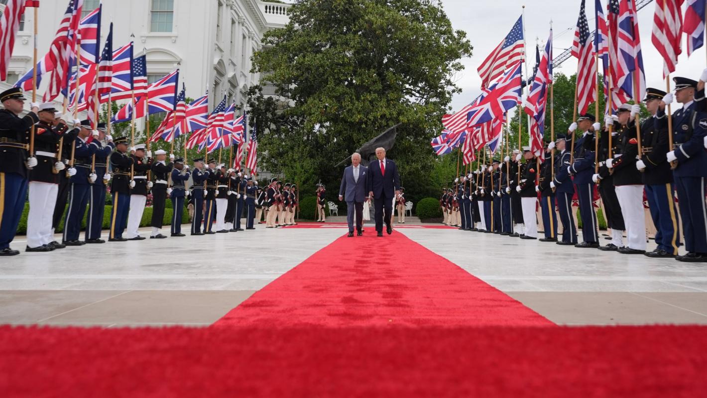 Въпреки дъждовното време огромно множество се събра пред Белия дом, за да проследи посрещането на крал Чарлз III и кралица Камила от американския президент Доналд Тръмп и първата дама Мелания Тръмп. Кралската двойка беше приветствана с официална военна церемония, след която държавният глава произнесе реч, изцяло посветена на историческите връзки и специалните отношения между САЩ и Обединеното кралство, предава Би Би Си.