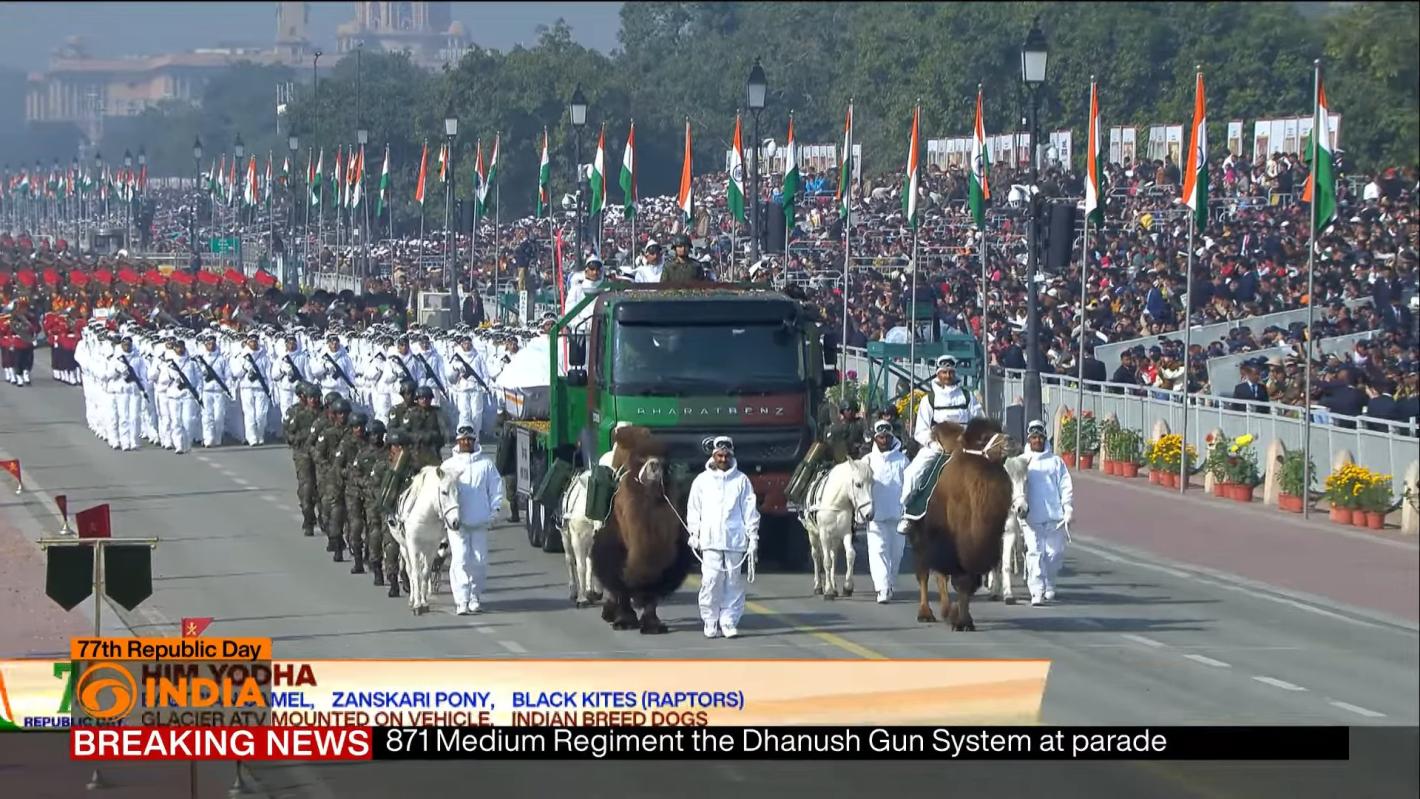 Лидерите на Европейския съюз бяха почетни гости на традиционния военен парад по случай Деня на републиката в Индия. Честването на 77-ия Ден на републиката в индийската столица включваше военни оркестри, кавалерийски части с коне и камили, мотоциклети, дронове, хиперзвукови ракети и множество подвижни макети от индийската история и бит.