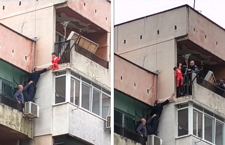 Сигналът е подаден около 13:30 часа. Пристигналите незабавно на мястото полицаи заварват момченце на около две и половина години, стъпило на водосток от външната страна на парапета на тераса на осми етаж на жилищен блок № 14 в ямболския квартал "Златен рог".