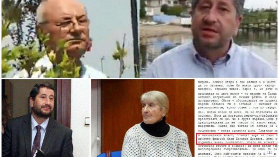 “Тук в Пазарджик лежи моят приятел-философ Меди Доганов Доганов, който и осъден от три години и лежи в затвора на строг, тъмничен, 10-годишен режим, с дете, родено след като той е бил вече в затвора. Само защото се е съпротивил (в защита) на нормалното, човешкото, последното, което му остава на човека - да знае гроба на мама и тате, да не му го превадят и заравят наново”, крещи в страстно заслепение Бойкикева, призовавайки за оставка на тогавашния главен прокурор Васил Мръцков. Ако читателите откриват брилянтна аналогия с днешните пируети на сина й Христо Иванов, най-вероятно не се заблуждават. “Наистина го познавам (бел. ред. - Ахмед Доган) отпреди 10 ноември, защото майката на неговия син беше пет години редактор в редакция ,,Философия” в издателството ,,Наука иизкуство”. Тогава аз бях главен редактор и си спомням, когато се роди синът му. Оттогава много добре го знам, а и той добре ме знае“, признава Мария Бойкикева в свое интервю неотдавна. Паметливи припомнят, че през онези години през нейния подпис са минавали и редица книги, като вероятно това се отнася и до тези на Доган.Ta кой ще повярва днес, че тези близки отношения със семейна интимност и женски приятелства е изличено. Нещо повече - Мария Бойкикева е работила с Доган, тогава прекъстен на Меди Доганов. Тя е била председател на Клуба за подкрепа нагласността и преустройството, и не спира да се вълнуваот обществените дела и затова и думите й, казани на митинг в Пазарджик през далечната 1989 г. за “приятеля" й Доган, са напълно резонни. Още повече,че тя така и не остъпва от социалистическите си възгледи и запазва членство в БКП и БСП, като предпочита да не коментира опитите на третия й син да се представя за прозападен и демократ.Eдно от първите решения на Политбюро на БКП след 10 ноември е да възстанови партийното членство на 13 дисиденти, сред които и Бойкикева. Тя е сред неколцината, които приемат да се върнат в партията, където остава и дори присъства и в новия век на политическите сбирки, напук на опитите на сина й да се прави на демократ. ,,В нашето семейство не сме хора, които мислят вкатегориите “или/или”. А по-скоро сме “и/и”. Това важи иза сина ми Христо”, пестеливо споделя Мария Бойкикева. Тя не крие, че той е търсил подкрепа за идеите си в БСП, преди да стане министър на Бойко Борисов. От там обаче проявили високомерие и не изслушали идеите за съдебна реформа. Според майка му Xристо Иванов останал с впечатление, че партията не се интересува от тази тема, макар по това време тя все още да се надявала, че някой ден ,,БСП може дапридобие един по-такъв вид", не крие надеждите си другарката Бойкикева. Както са казали старите хора - кръвта вода не става. Източник: crimesbg.com