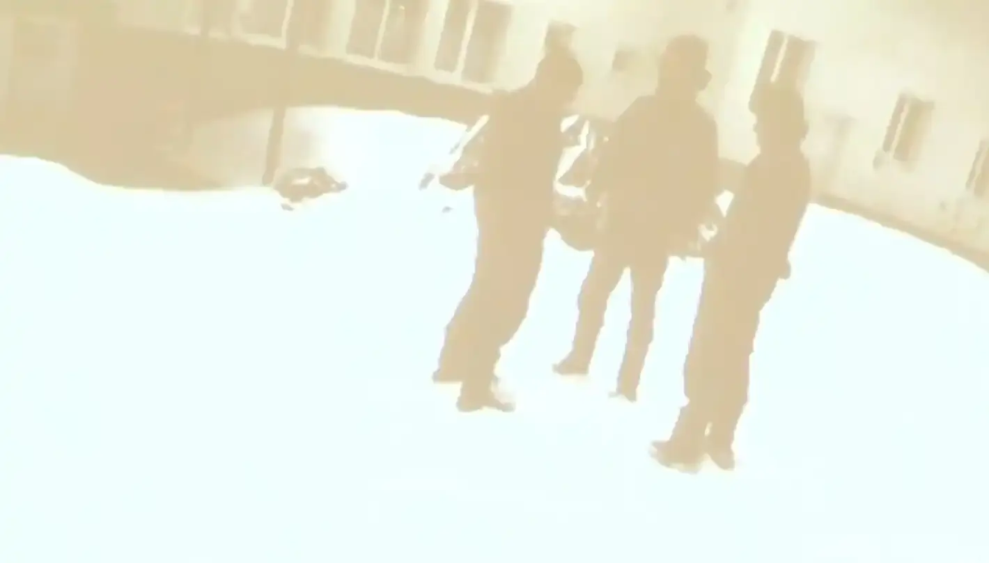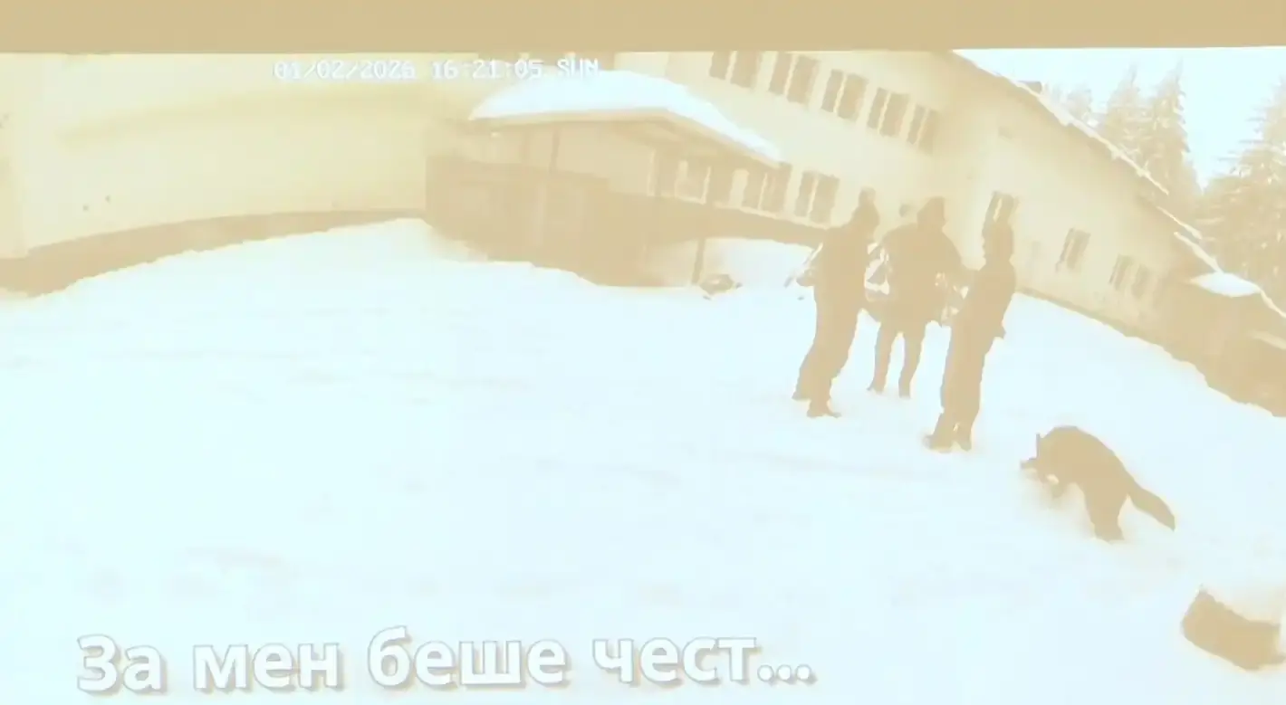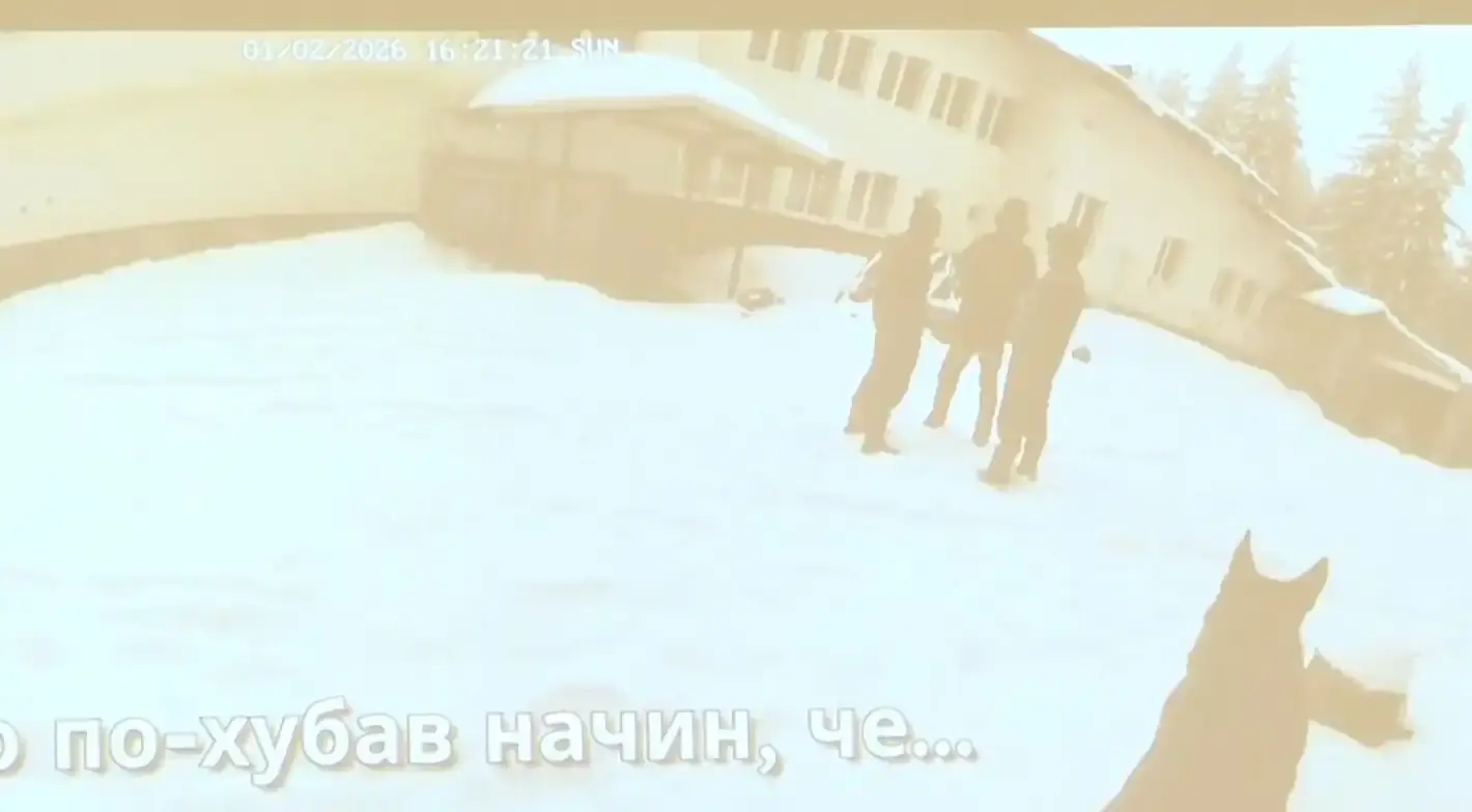 От камерите, които се виждат на самото място, това е в 10 часа на 01.02 - неделя, вижда т се три от лицата с червеното яке е ръководителя, а този който е встрани е непълнолетното лице. Има трето лице, което липсва от тази камера. На този запис виждаме как ръководителя си взима сбогом с трите мъртви лица на територията на хижата. Вдясно се вижда кемпера, с който малко след като си взимат сбогом се качват на него и напускат рйона на Петрохан.