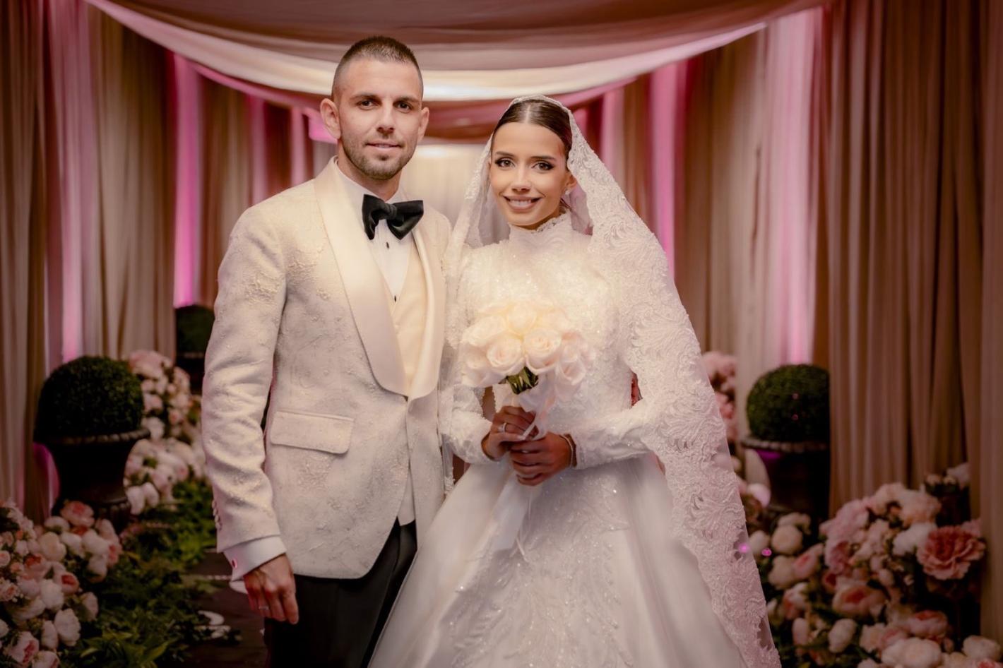 Двамата се врекоха пред Бог в столичния храм “Въздвижение на Светия Кръст”, а след това сватбеното тържество се пренесе в известен хотел, издадоха присъствали на церемонията. Булката, която е бивша тенесистка от Пловдив, блестеше в изискана рокля, дело на именит турски дизайнер. Младоженецът избра стилен костюм от италиански бранд.